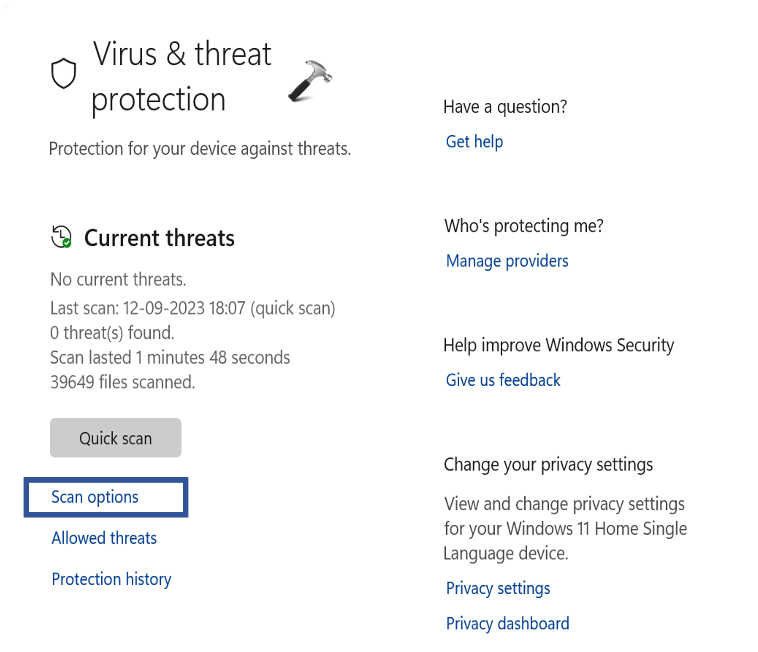 2. Teraz wybierz „Ochrona przed wirusami i zagrożeniamiopcja.