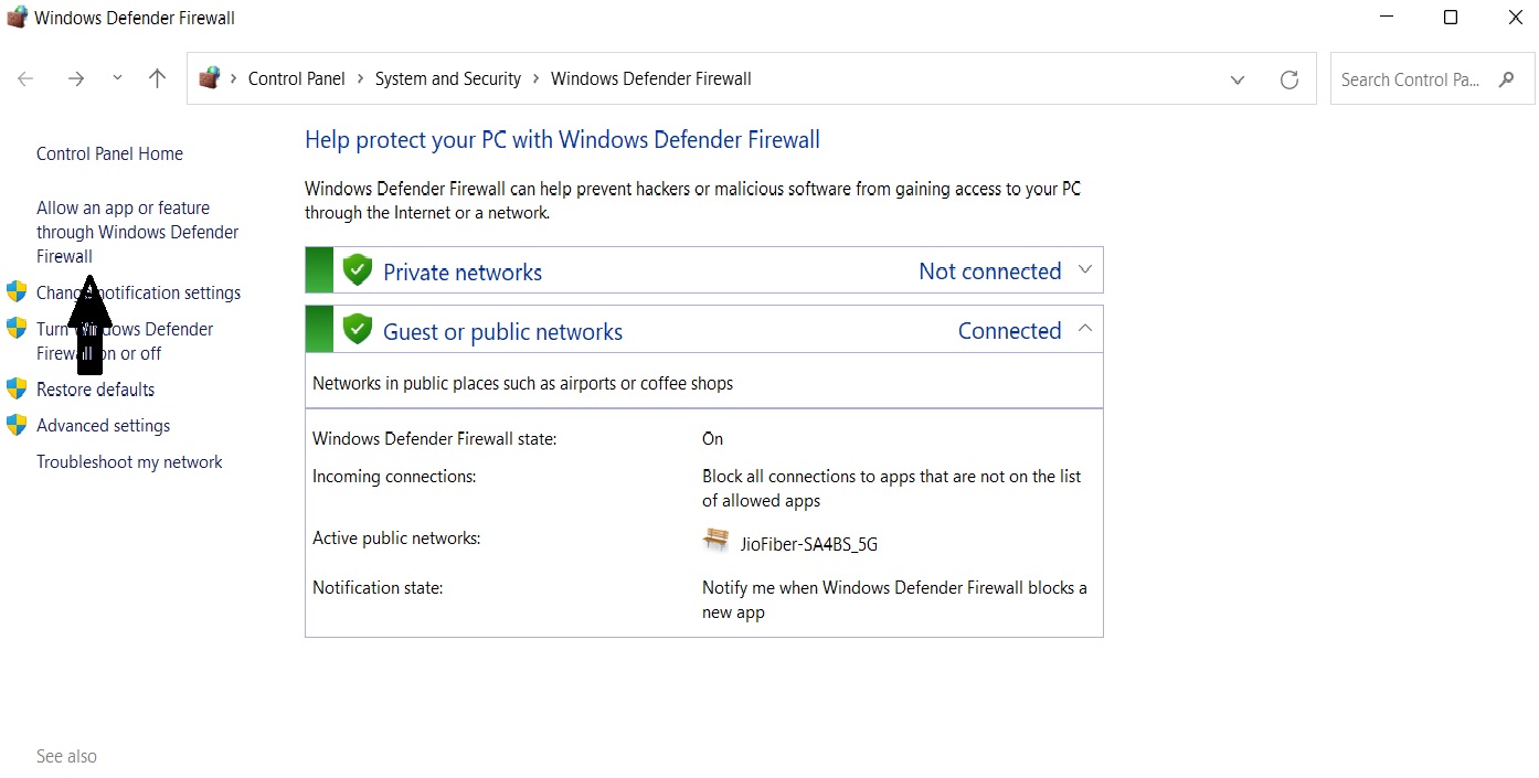 Zapora Windows Defender na Twoim urządzeniu może zezwolić na korzystanie z funkcji Wireless Display lub ją zablokować. Możesz więc sprawdzić ustawienia zapory sieciowej swojego urządzenia, jeśli chcesz używać funkcji Wireless Display z komputerem hostem. Możesz to zrobić, wykonując poniższe kroki.