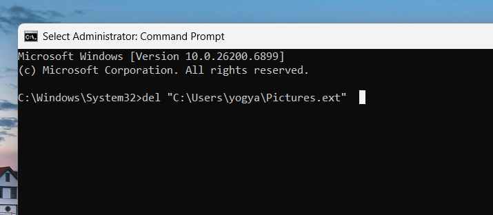 del "C:PathToFile.ext"