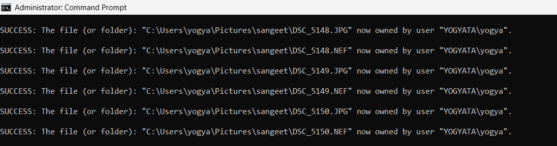 3. Następnie przyznaj pełną kontrolę za pomocą icacls"C:PathToFile_or_Folder" /grant YourUsername:F /t