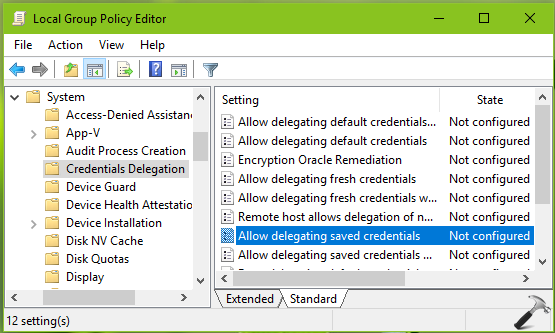 Computer Configuration > Administrative Templates > System > Credentials Delegation