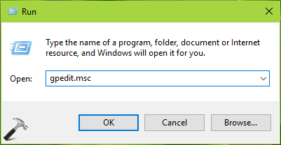 1.NaciskaćWindows + Ri umieścić gpedit.mscWUruchomićokno dialogowe umożliwiające otwarcie przystawki GPO. TrzaskOK.
