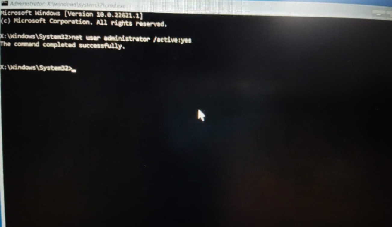 - WybieraćRozwiązywanie problemów > Opcje zaawansowane > Wiersz poleceńi wpisz „administrator użytkowników sieci /aktywny:tak‘.