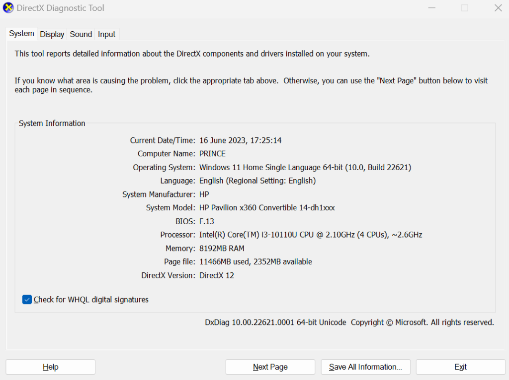 Krok 2:TypDxdiagi uderzWchodzićprzycisk.