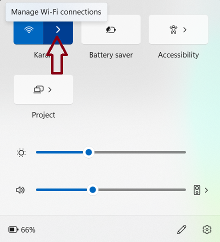 2. Kliknij strzałkę obok ikony Wi-Fi.