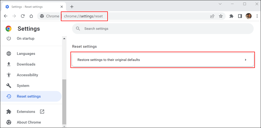 - Pastachrome://ustawienia/resetw pasku adresu przeglądarki Chrome i naciśnijWchodzićLubPowrót.