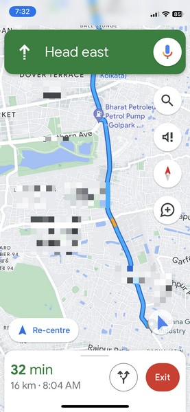 Począwszy od zawsze popularnych map Google,Google utrzymywał interfejs użytkownika aplikacji GPS prosto i prostyNa Androida i iOS. Ma 5-tabowy pasek nawigacyjny u dołu, pasek wyszukiwania u góry i pokazuje szybkie linki do znalezienia restauracji, stacji benzynowych i szpitali w pobliżu. Nawigacja w Mapach Google jest dość łatwa, nawet dla laika, ponieważ projekt interfejsu użytkownika umieszcza większość przycisków, lokalizacji i innych opcji aplikacji dokładnie tam, gdzie powinny być.