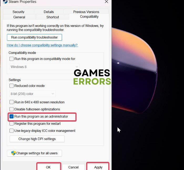 3. wUstawieniasekcji, pamiętaj o zaznaczeniu „Uruchom ten program jako administrator
