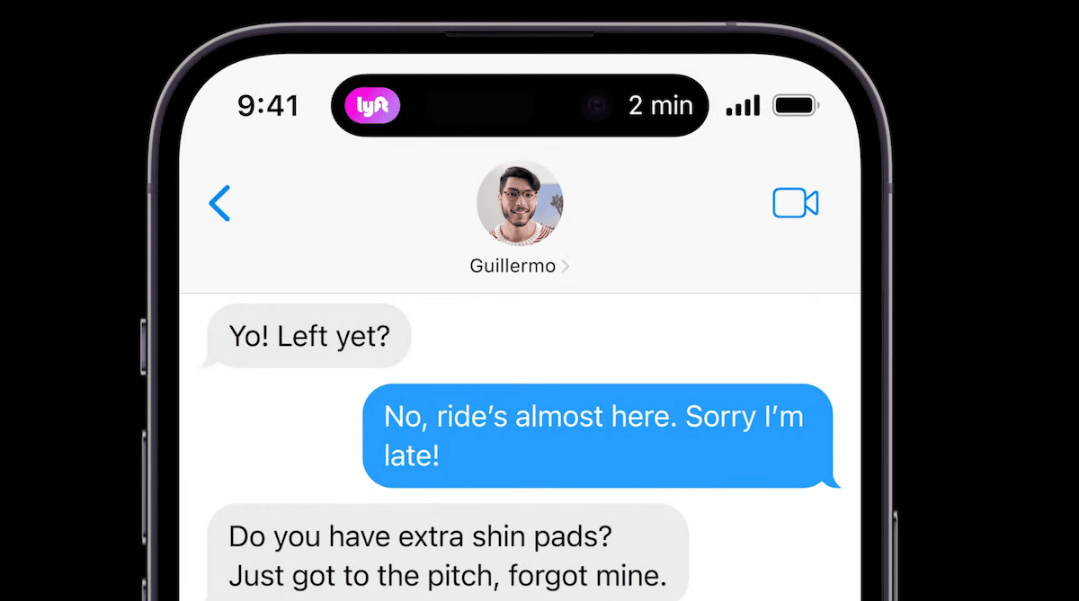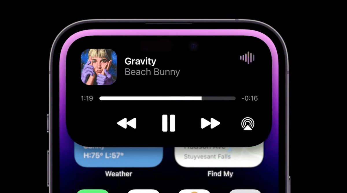 Na przykład, gdy użytkownik przesunie palcem, aby przejść do strony głównej z Apple Music, aplikacja płynnie przekształca się w Dynamic Island, pozostając aktywną i widoczną. Użytkownicy mogą dotknąć i przytrzymać, aby wyświetlić więcej opcji, takich jak wstrzymywanie, pomijanie, przewijanie do tyłu lub przeglądanie okładki albumu. Możesz też sprawdzić, jak daleko jest ich podróż, wysyłając SMS-a do znajomego.