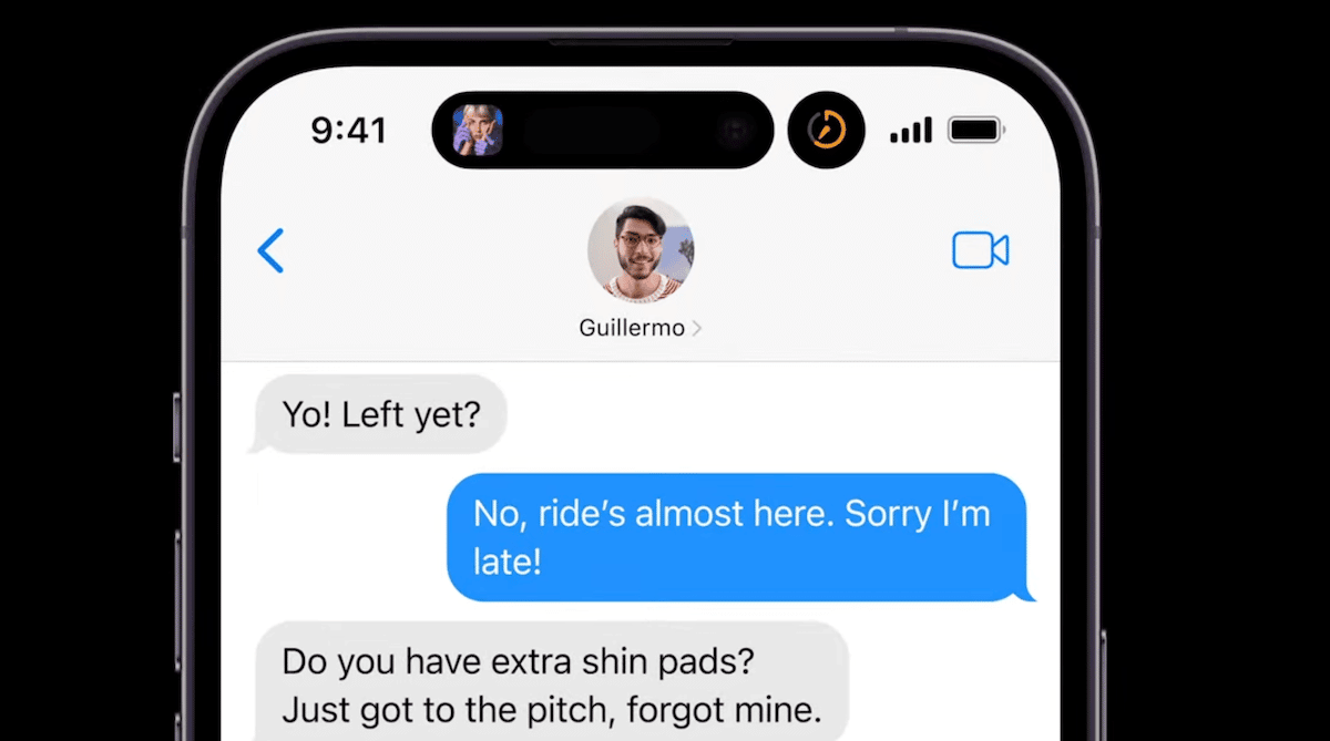 A gdy użytkownicy mają więcej niż jedną aktywność w tle, Dynamic Island dzieli się na dwa elementy. Jako zawsze żywa i aktywna przestrzeń, oferuje unikalne animacje alertów z ich własnymi osobowościami, co ułatwia ich identyfikację na pierwszy rzut oka w celu nawigacji, połączeń, timera, uwierzytelniania FaceID i nie tylko.