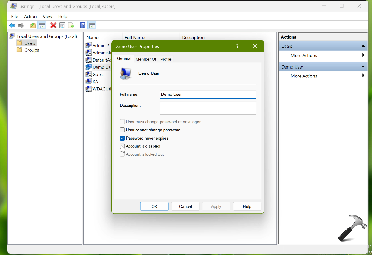 - Kliknij dwukrotnie konto użytkownika, które chcesz ukryć, aby uzyskać dostęp do jego właściwości.