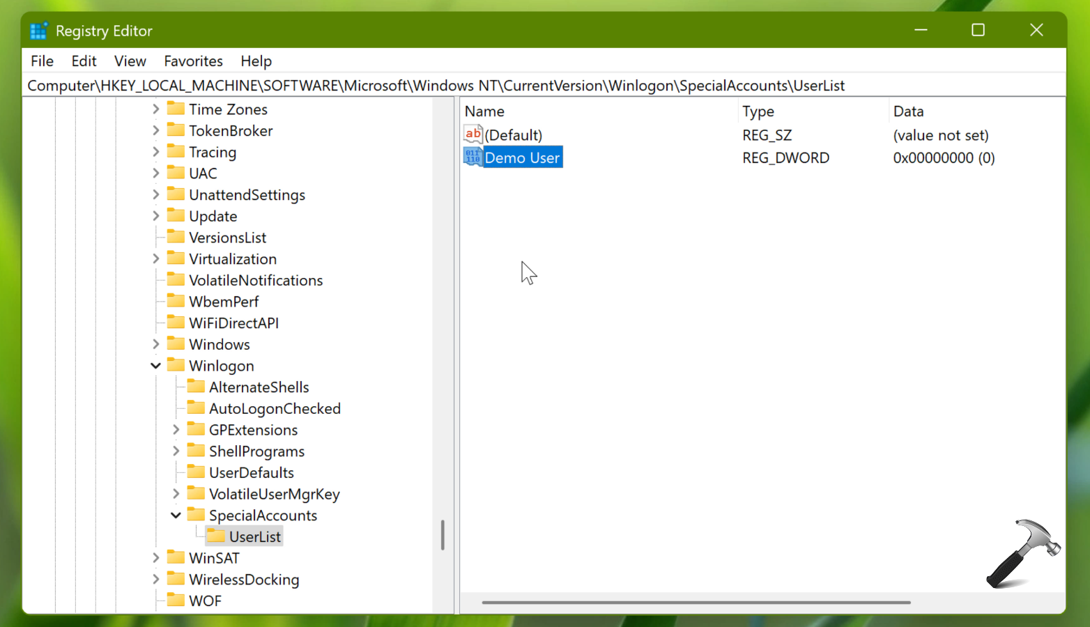 Metoda 2 – Ukryj określone konto użytkownika za pomocą rejestru