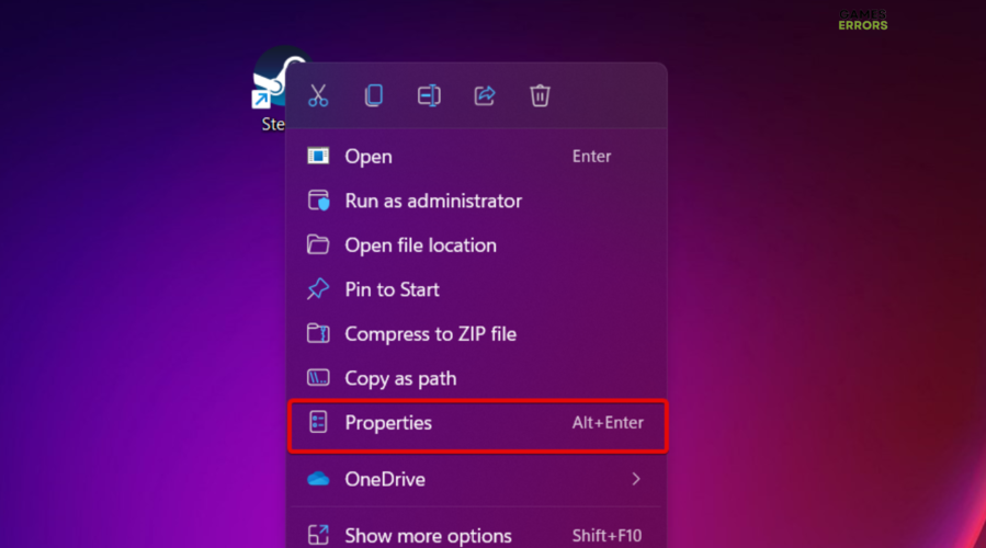 - Na komputerze znajdź plikPremiera gier Steam/Epicr exe, kliknij go prawym przyciskiem myszy i wybierz Właściwości.