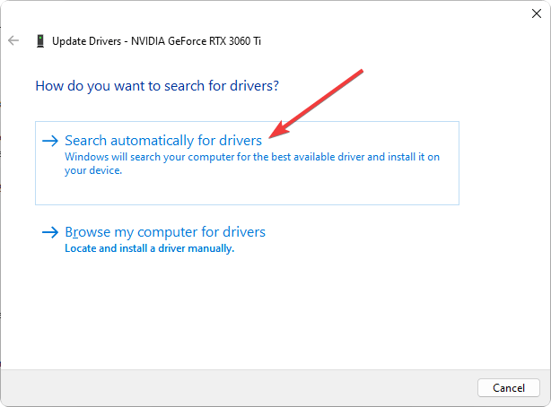 - KliknijWyszukaj automatycznie sterownikii zaktualizuj sterownik.