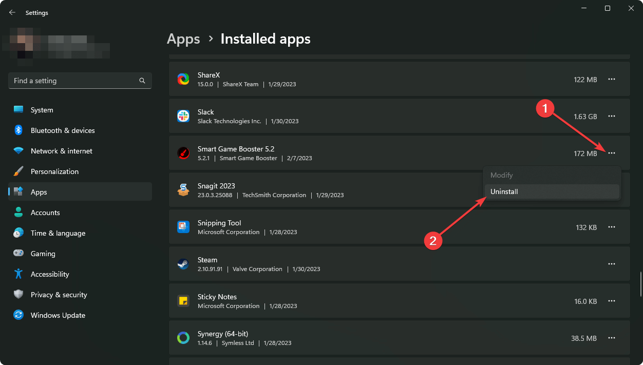 5. Odinstaluj lub wyłącz wzmacniacz gry i inne aplikacje powodujące konflikt
