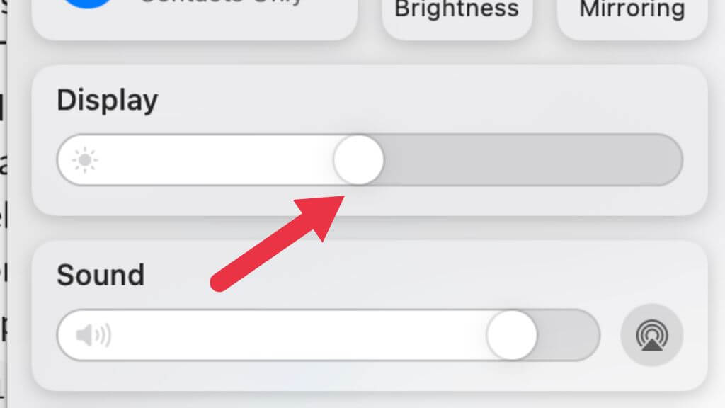 Na komputerze Mac z systemem macOS możesz zrobić to samo, klikając ikonęCentrum sterowaniaikona w prawym górnym rogu ekranu komputera. Jednak korzystając z wyświetlacza zewnętrznego, zobaczysz, że te suwaki są wyszarzone na wyświetlaczu zewnętrznym.
