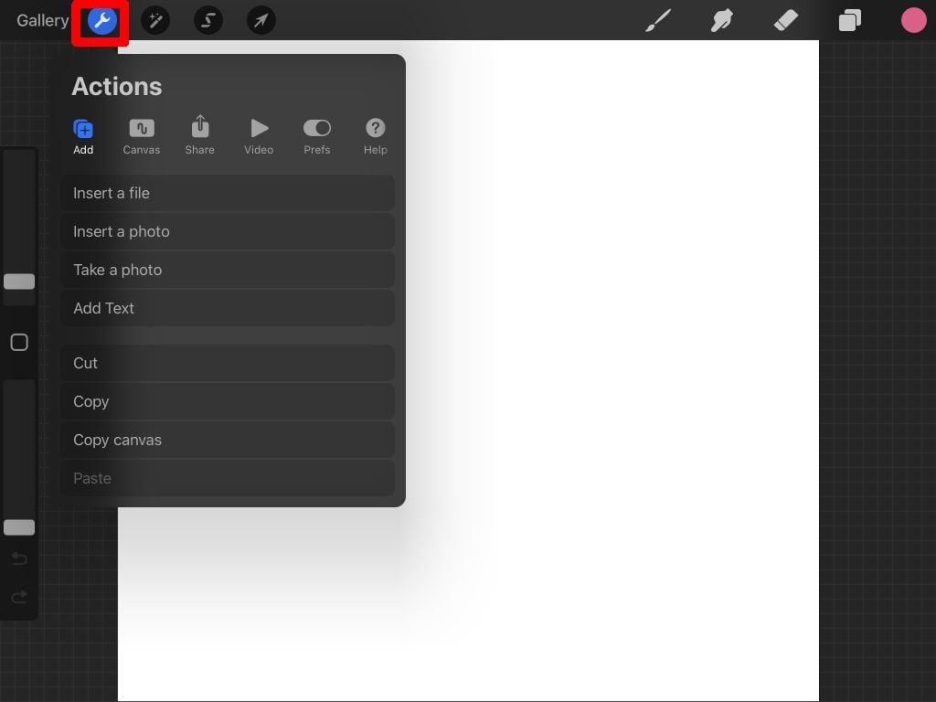 - Stuknij wkluczikonę w lewym górnym rogu, aby otworzyćDziałaniamenu.