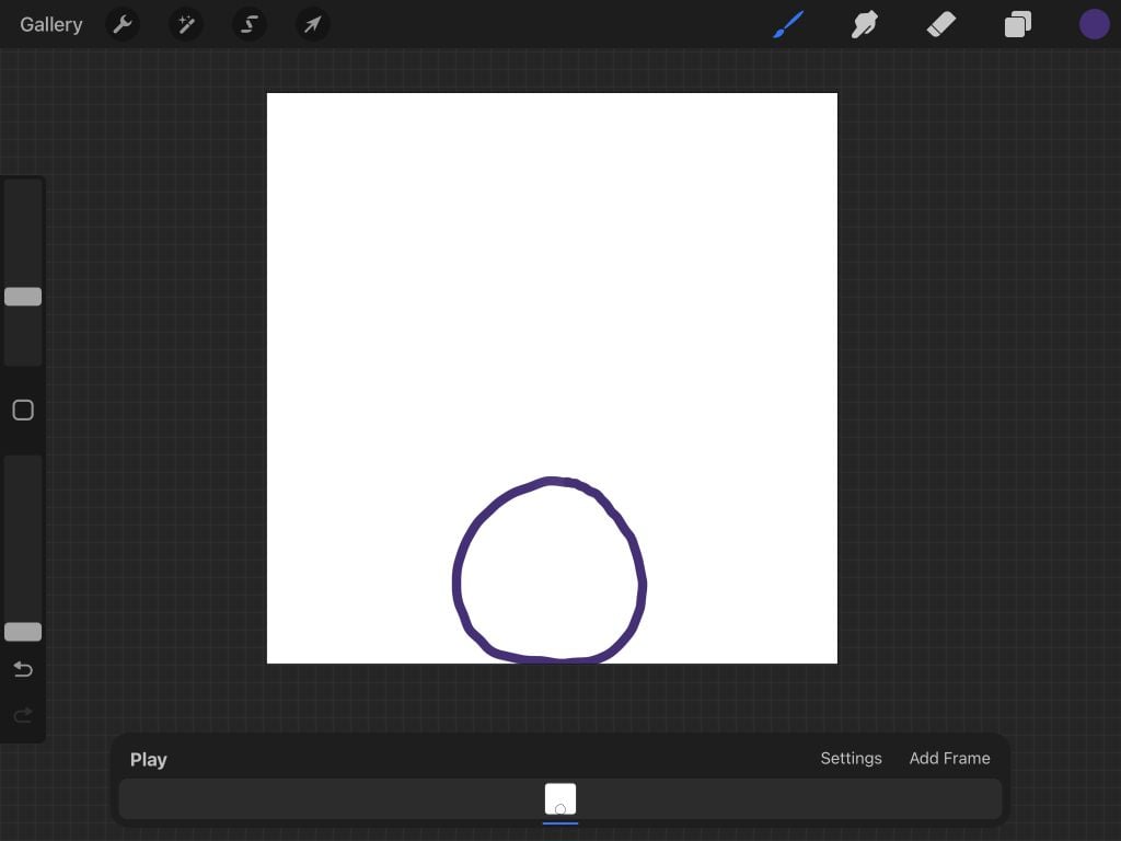 Najpierw wybierz jeden z pędzli Procreate, a następnie narysuj obiekt w jego pozycji początkowej w pierwszej klatce.