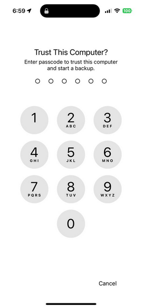 Notatka:Będziesz musiałpodaj swój kod dostępu na swoim iPhoniena tym etapie, aby zezwolić na utworzenie lokalnej kopii zapasowej.
