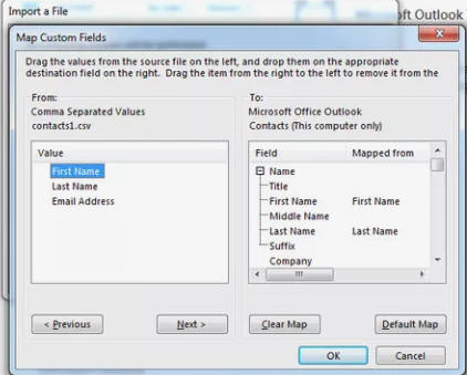 9.NaciśnijSkończyći zaznacz wszystkie kolumny, które chcesz dodać do książki adresowej konta Outlook.