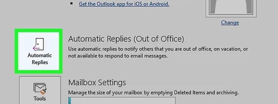 2.WybierzWięcej ustawieńopcję z wyskakującego okienka i wybierzOdpowiedź na wakacjez lewego panelu.