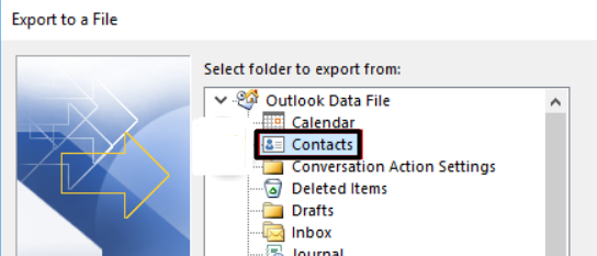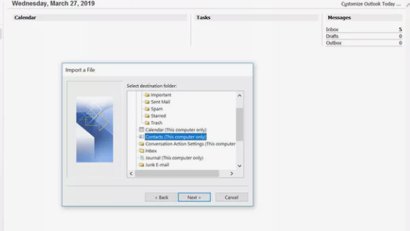 7.Wybierz folder Outlook, do którego chcesz zaimportować wszystkie swoje kontaktyZaimportuj plikpodpowiedź.