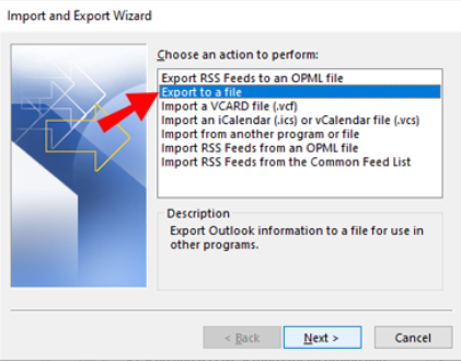 3.KliknijEksportuj do plikuopcja wKreator importu i eksportuokno, a następnie kliknijDalej >.