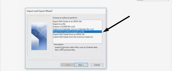 3.WybierzImportuj z innego programu lub plikuopcja naKreator importu i eksportupodpowiedź.