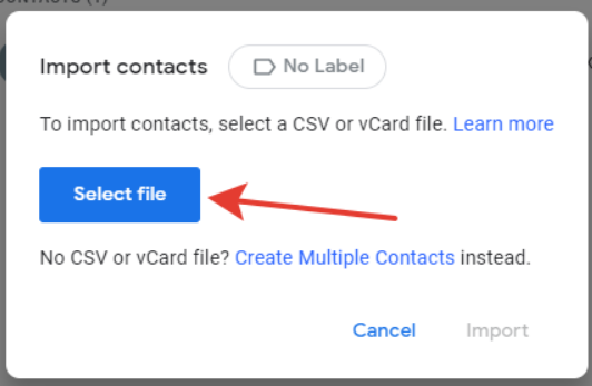 4.Po przesłaniu pliku kliknij przyciskImportw monicie i prześlij swoje kontakty.