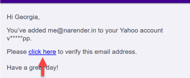 5.Po zakończeniu otwórz swoje stare konto e-mail i kliknij przyciskkliknij tutajtekst wiadomości e-mail otrzymanej od Yahoo.