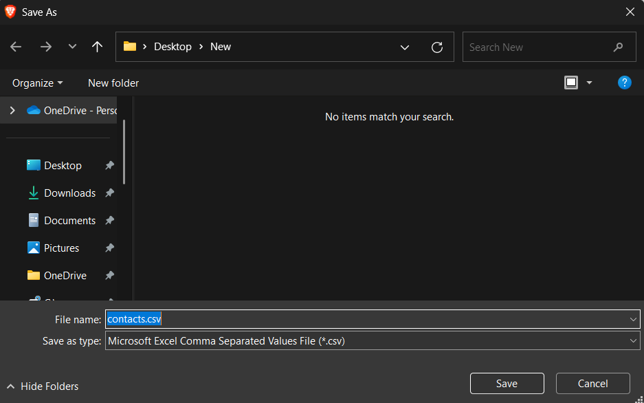 7.Kliknij naDalej >opcję, a następnie kliknijSkończyći zapisz plik kontaktów w wybranej lokalizacji.