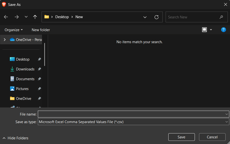 5.Na koniec nadaj plikowi dowolną nazwę i kliknij przyciskRatowaćprzycisk, aby pobrać plik .csv do swojego systemu.