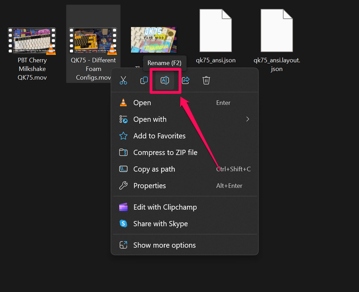 4.Teraz możesz po prostukliknij plik prawym przyciskiem myszy, aby otworzyć menu kontekstowe i wybraćPrzemianowaćopcję (zrzut ekranu poniżej). Możesz także kliknąć lewym przyciskiem myszy, aby najpierw wybrać plik, a następnie nacisnąć klawisz F2 na klawiaturze, aby zmienić jego nazwę na urządzeniu.