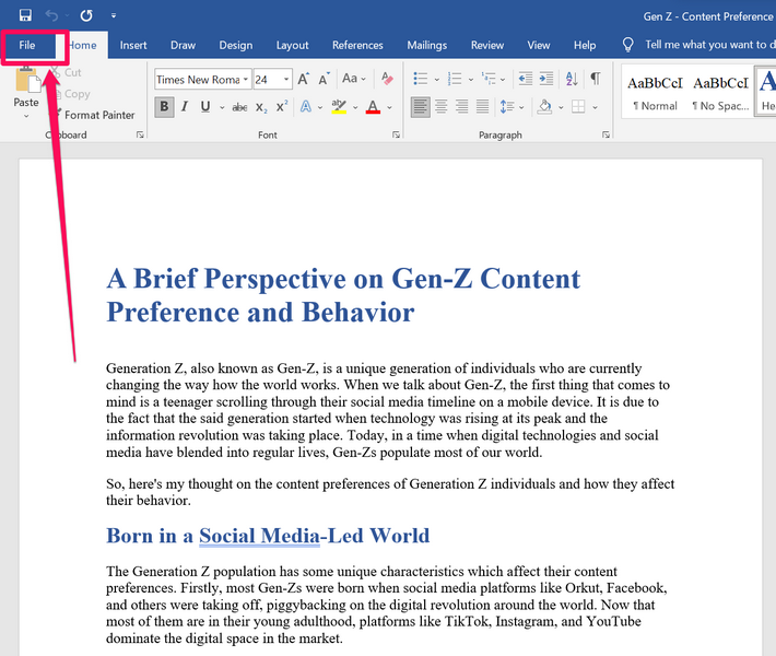 3. Otwórz toklikając lewym przyciskiem myszy plik. Alternatywnie możesz bezpośrednio otworzyć plik .docx, który chcesz przekonwertować, bez otwierania go za pomocą programu MS Word.