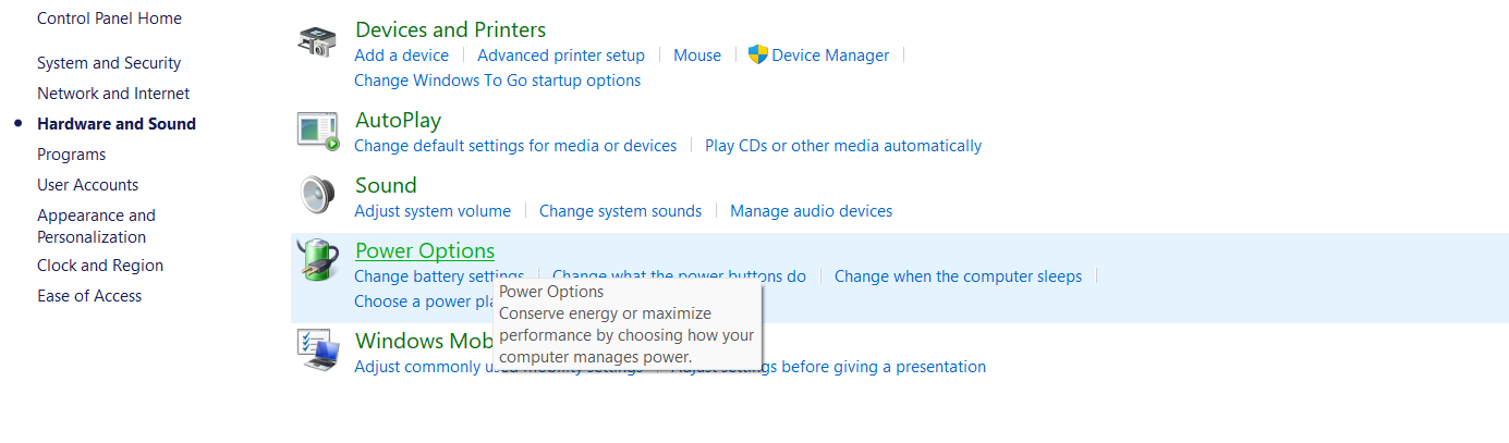Kliknij lub naciśnij ikonę Opcje zasilania w Panelu sterowania (widok ikon):