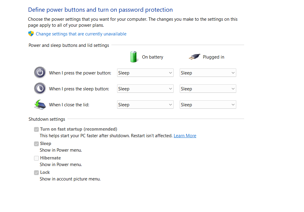 5.Zmień działanie przycisków zasilania, klikając łącze.