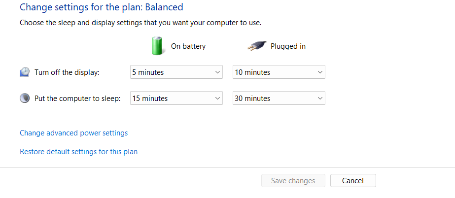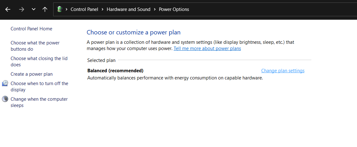1.W przypadku planu zasilania, do którego chcesz to zastosować, kliknij lub dotknij link Zmień ustawienia planu.