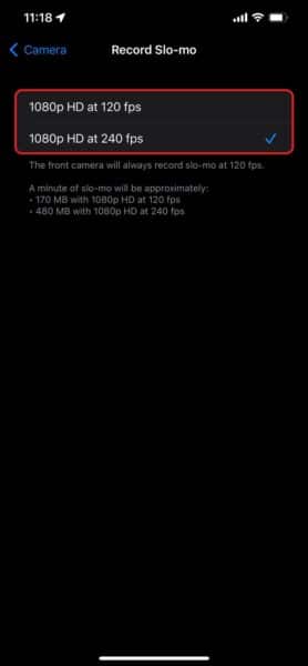 - Możesz także zmienić liczbę klatek na sekundę w przypadku filmów w zwolnionym tempie. KliknijNagrywaj w zwolnionym tempie.