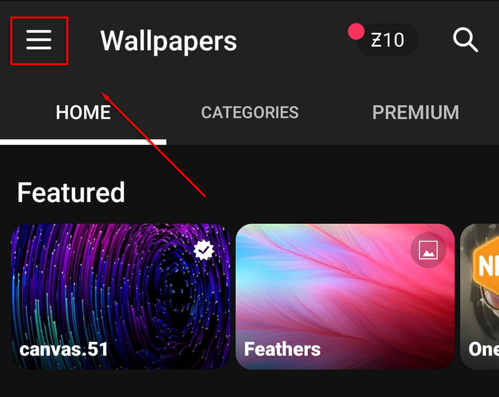 - Kliknijtrzy poziome liniew lewym górnym rogu ekranu.