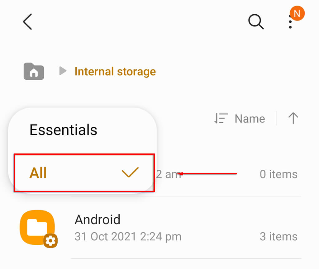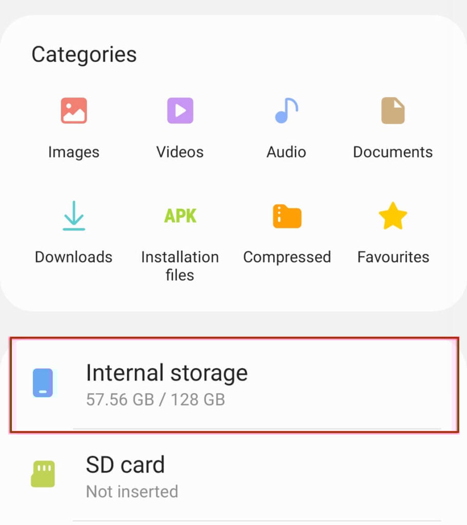 - Następnie musisz wrócić doPamięć wewnętrznaWMoje pliki.