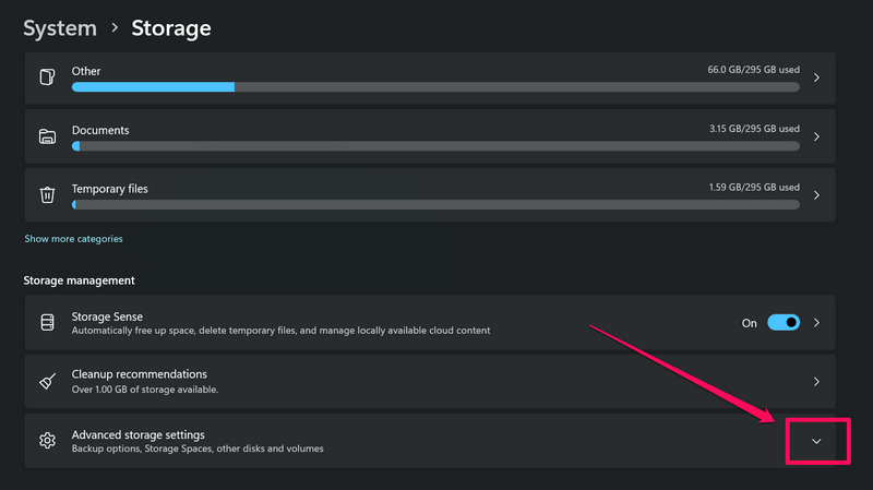 3.KliknijstrzałkaobokZaawansowane ustawienia pamięciAby rozwinąć sekcję.