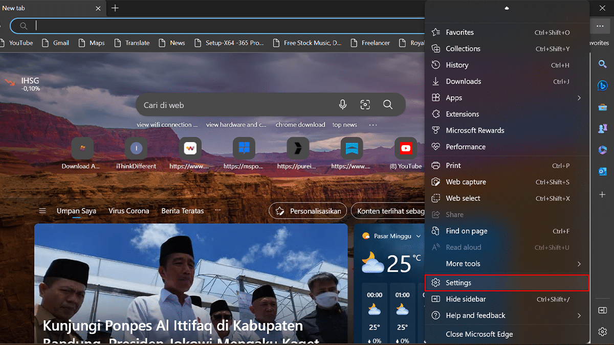 - Kliknij ikonę z trzema kropkami (...) w prawym górnym rogu > przewiń w dół > kliknijUstawieniaopcja.