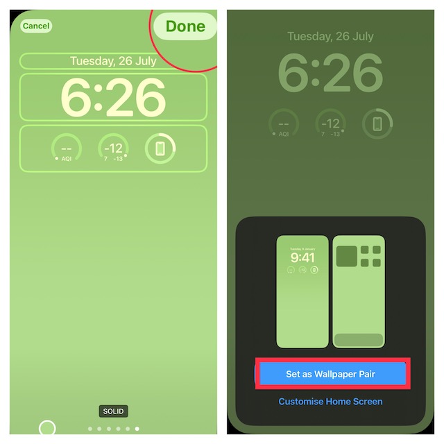 8.Po dostosowaniu ekranu blokady dotknijZrobionew prawym górnym rogu ekranu.