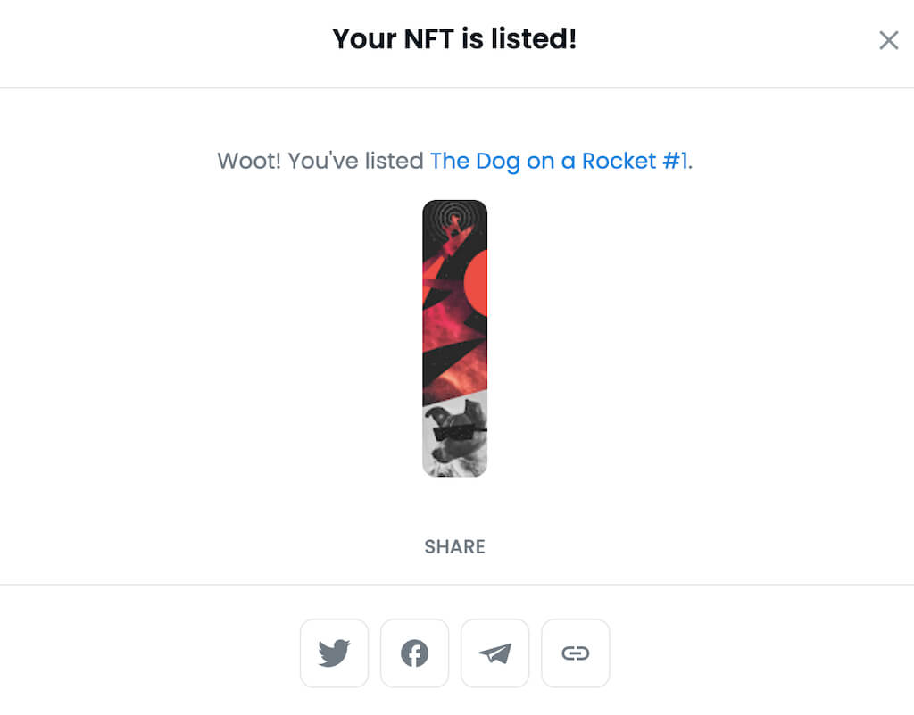 To wszystko, udało Ci się wystawić swój pierwszy NFT na OpenSea! Jednak wybicie i wystawienie twojego NFT jest znacznie łatwiejsze niż jego sprzedaż. W Opensea możesz wybrać jedynie czas trwania wyprzedaży. Na innych platformach, takich jak Rarible, możesz także ustawić aukcję czasową lub aukcję nieograniczoną, aby zwiększyć swoje szanse na sprzedaż tokena.