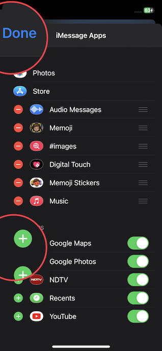 Jeśli chcesz dodać nowe aplikacje do szuflady aplikacji iMessage, dotknijprzycisk „+”.po lewej stronie określonej aplikacji wymienionej w sekcji Więcej aplikacji. Ponieważ nie ma żadnych ograniczeń, możesz dodać do szuflady aplikacji tyle aplikacji, ile potrzebujesz. Aby jednak zachować porządek, zalecam pozostawienie tylko niezbędnych aplikacji.