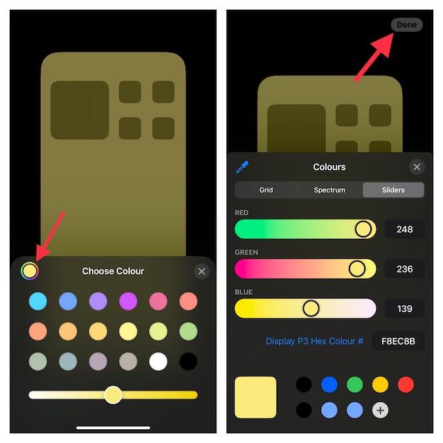 A jeśli chcesz posunąć się jeszcze dalej, dotknijpaleta koloróww prawym dolnym rogu okna koloru tła. Następnie możesz użyć narzędzi takich jak siatka, widmo i suwak, aby dostroić kolor.