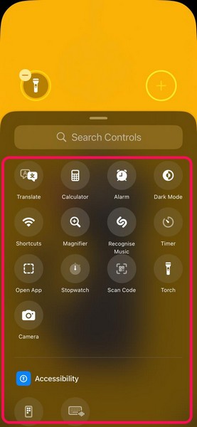 9.Ty też możeszużyj powyższego paska wyszukiwania, aby znaleźć konkretną kontrolkędodać jako przycisk szybkiej akcji na ekranie blokady.