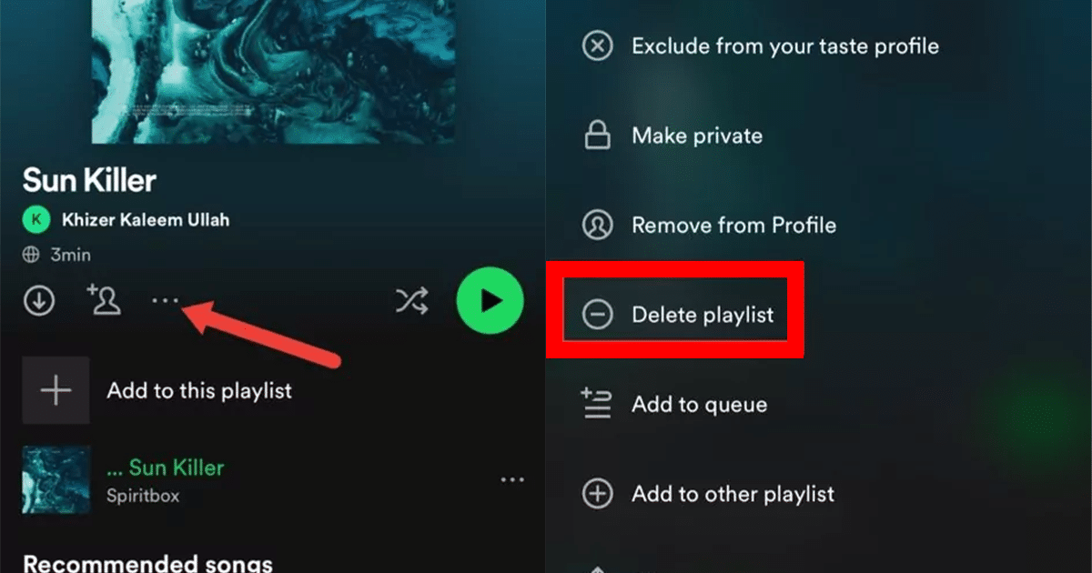 - W wyświetlonym menu przewiń w dół i wybierz „Usuń listę odtwarzania”.
