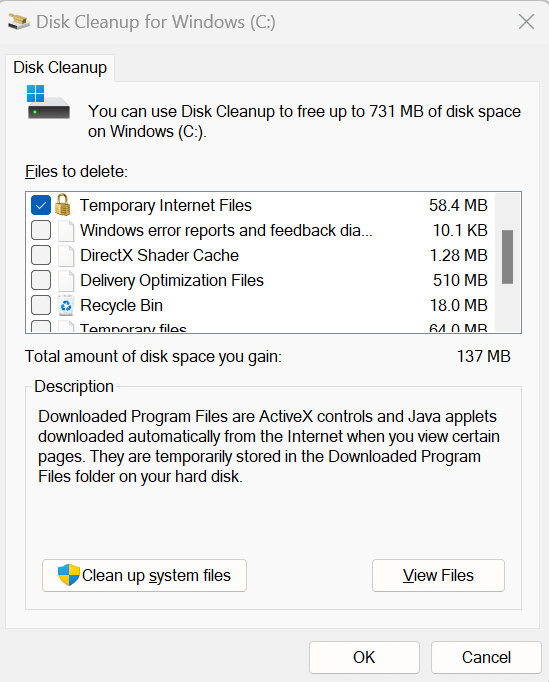 Krok 4:WybierzWyczyść pliki systemoweopcja.