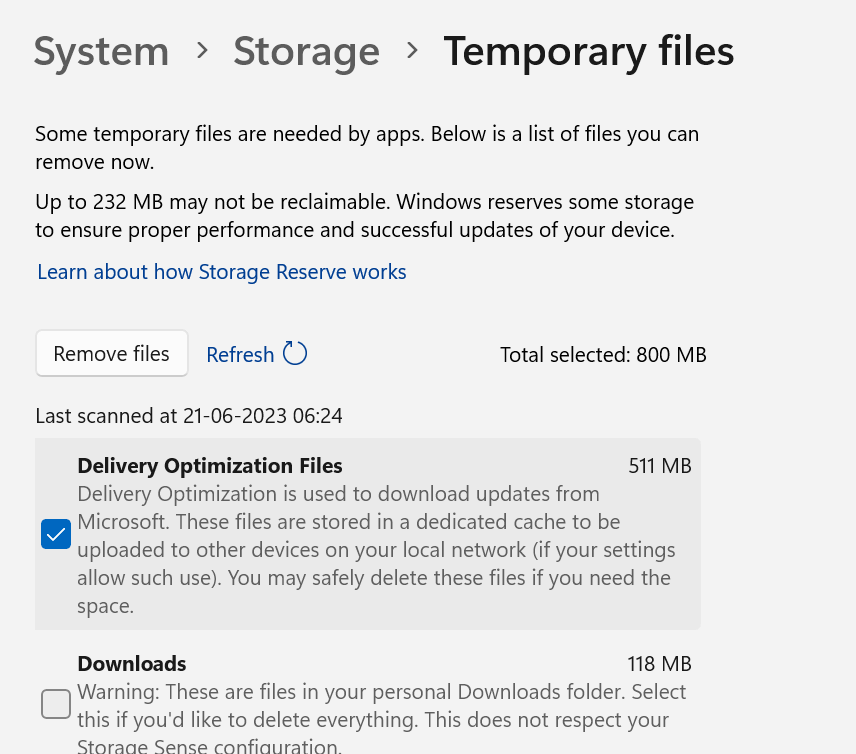 Krok 6:Możesz także zaznaczyć opcję obok Poprzednie instalacje systemu Windows. Robiąc to,Windows.staryzostaną usunięte.